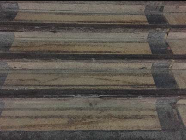 彩绘剥落、地面裂损、油漆褪色、地面污染