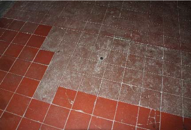 水磨石面层污染、须弥座裂损、缸砖残损