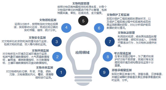 ? ? ? ?“文物云平台”响应了国家关于“运用云计算、大数据、‘互联网+’等现代信息技术,推动文物保护与现代科技融合创新”,推动“文物预防性保护”工作的要求,有效解决了文物管理单位在文物结构安全、生物病害、防火、防盗等关键关切问题上的困扰。